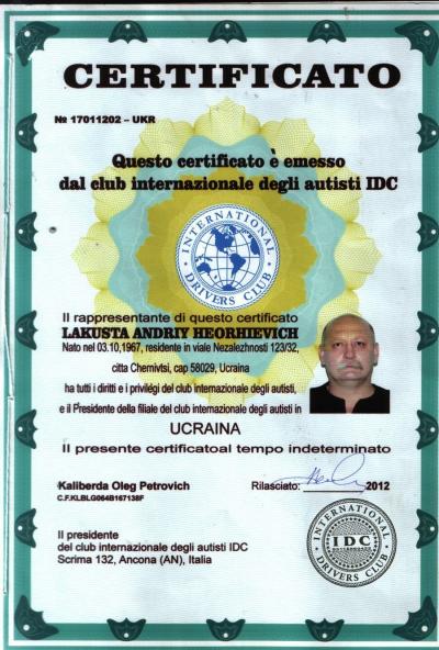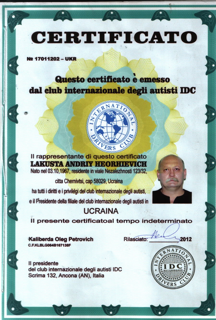 Agent umowy międzynarodowej klub jazdy Download Umowa pomiędzy przedstawicielem klubu IDC na terytorium Ukrainy, Czerniowce, biznesmen, Andrey Lakusta Download